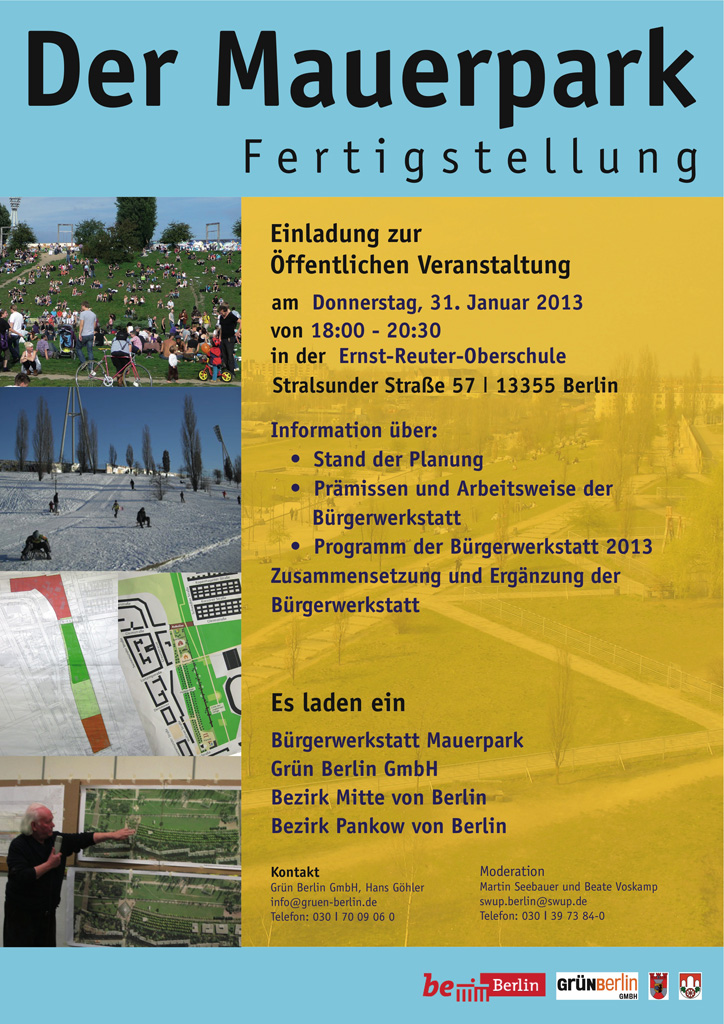 Nur durch ein gemeinsames und konstruktives Engagement der Bürger wachsen Prenzlauer Berg und Wedding am Mauerpark zusammen!