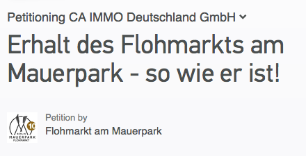 Die Betreiber des Flohmarkts haben in Vorbereitung dazu eine Petition auf Chance.org gestartet um der CA Immo den Stellenwert des Flohmarkts zu dokumentieren.