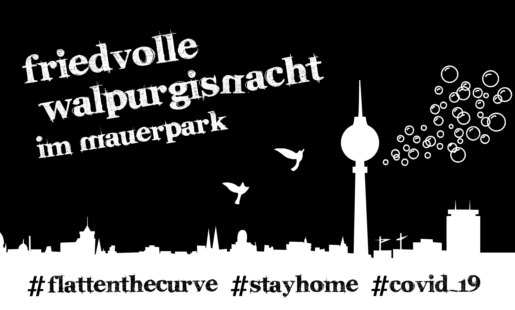 Die aktuellen SARS-CoV-2-Versammlungseinschränkungen und die völlig unklare Entwicklung machen eine weitere Planung der Walpurgisnacht im Mauerpark unmöglich. In Rücksprache mit dem Bezirksamt haben wir die Vorbereitung für die Friedvolle Walpurgisnacht 2020 eingestellt.