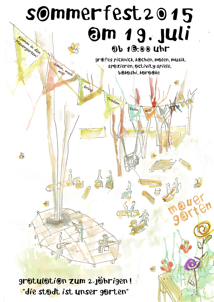 On Sunday, July 19, starting at 4:00 pm, Mauergarten will be hosting a party to celebrate both the summer and Mauergarten’s two-year birthday.