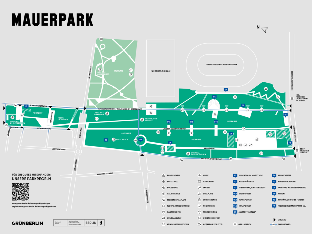 Please do not leave any rubbish in Mauerpark and, at the very least, dispose of it in the waste bins along the cobbled road. This also includes bottle tops, broken items and cigarette ends.