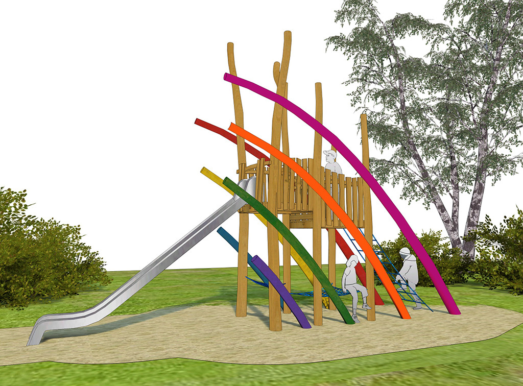 We, the Friends of Mauerpark, are now determined to get our Rainbow Playground back as a symbol for optimism and dreams. The plans have already been drawn up. The parks and gardens department has given the go-ahead and will support the work. The new rainbow will be made up of three separate parts that can be built in three stages. That makes the work – and also the financing – easier.