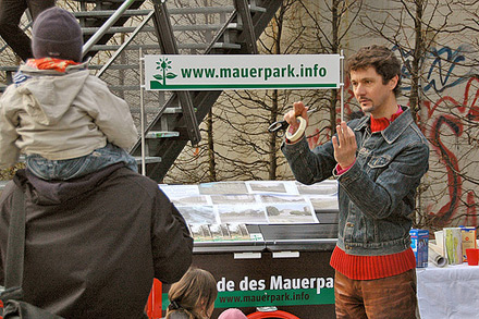 Das Besondere an unserem Konzept ist es, die Fertigstellung nicht als statische Forderung durchzusetzen, sondern gerade die Veränderungen der Randbedingungen und des reichen kulturellen und jugendgeprägten Lebens in die Planung einzubeziehen. Dazu knüpfen wir zu allen beteiligten politischen, planenden und soziokulturellen Institutionen und Gruppen Kontakte und tauschen Ideen aus in Abstimmung mit dem Planer des Parks, Professor Lange. Ziel ist es, einen fertiggestellten Mauerpark mit einer noch größeren Vielfalt an Nutzungen zu bekommen, der auch Raum lässt für kommerzielle parkverträgliche Nutzungen wie Flohmarkt, Marktplatz, Indoor-Spielplatz, Fahrrad-Touristen-Station und vor allem bisher nicht in Parkanlagen zu integrierende Freiräume wie Kindermitmachzirkus, Naturerfahrungs-Spielräume u.V.m.