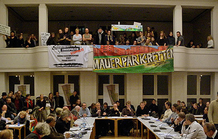 Auf der Sitzung der BVV wird bekannt, dass der Rat der Bürgermeister bereits beschlossen hat, dass der Senat das Bebauungsplanverfahren an sich zieht. Es handelt sich um eine Entmündigung des Bezirksparlaments und weitere Desavouierung von Bürgerinteressen. Der Senator für Stadtentwicklung und Umwelt soll die Auswertung der eingegangenen Einwendungen fortsetzen. Die getroffene Entscheidung trifft anhaltend auf großen Protest bei allen Mauerparkinitiativen und -vereinen.